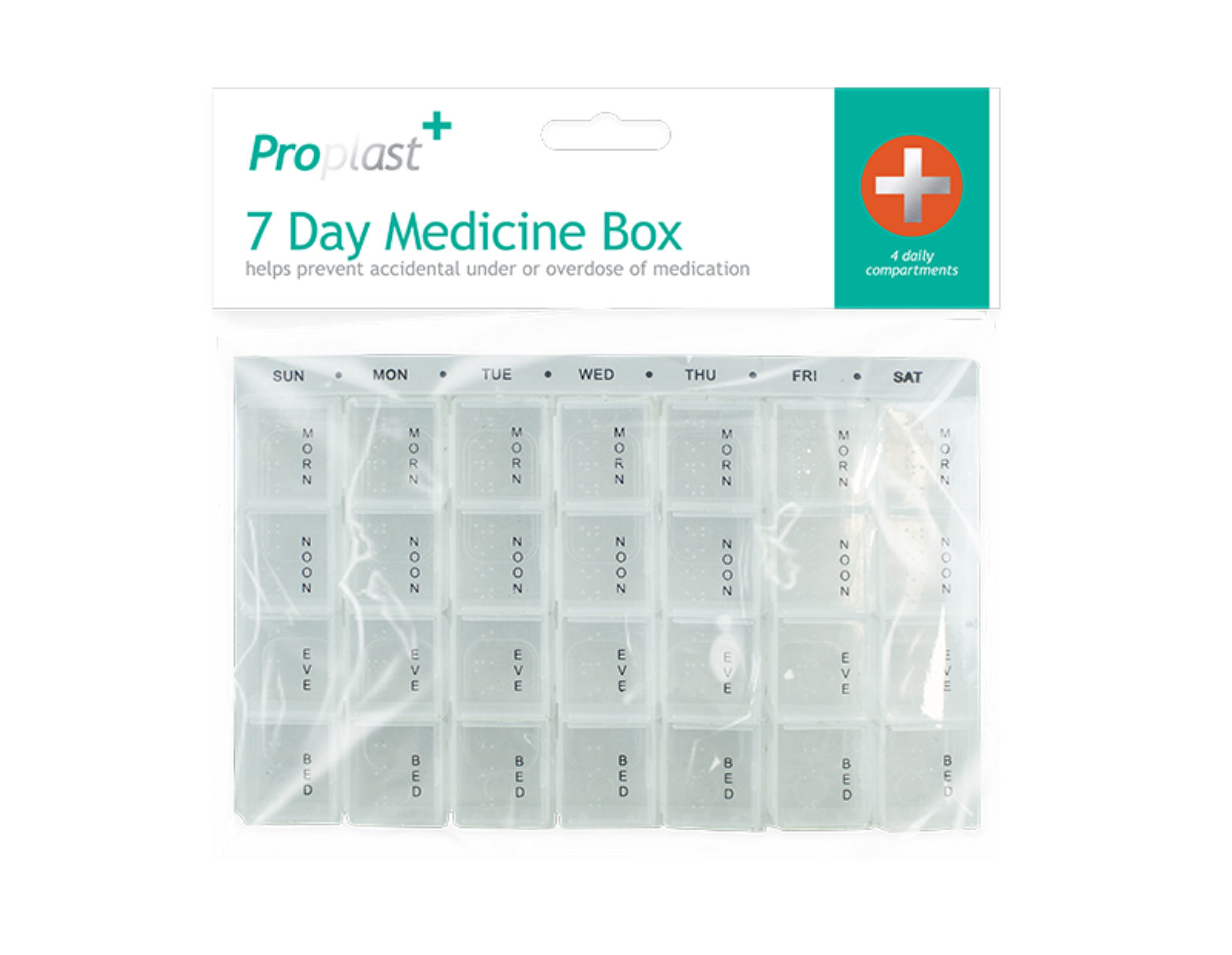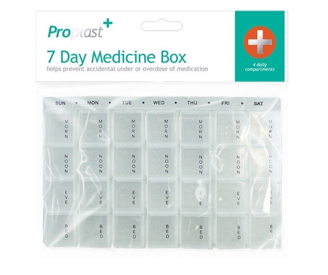 ProPlast 7 Day Pill Box Plastic 28 Compartments Storing Medication Medicine Aid
