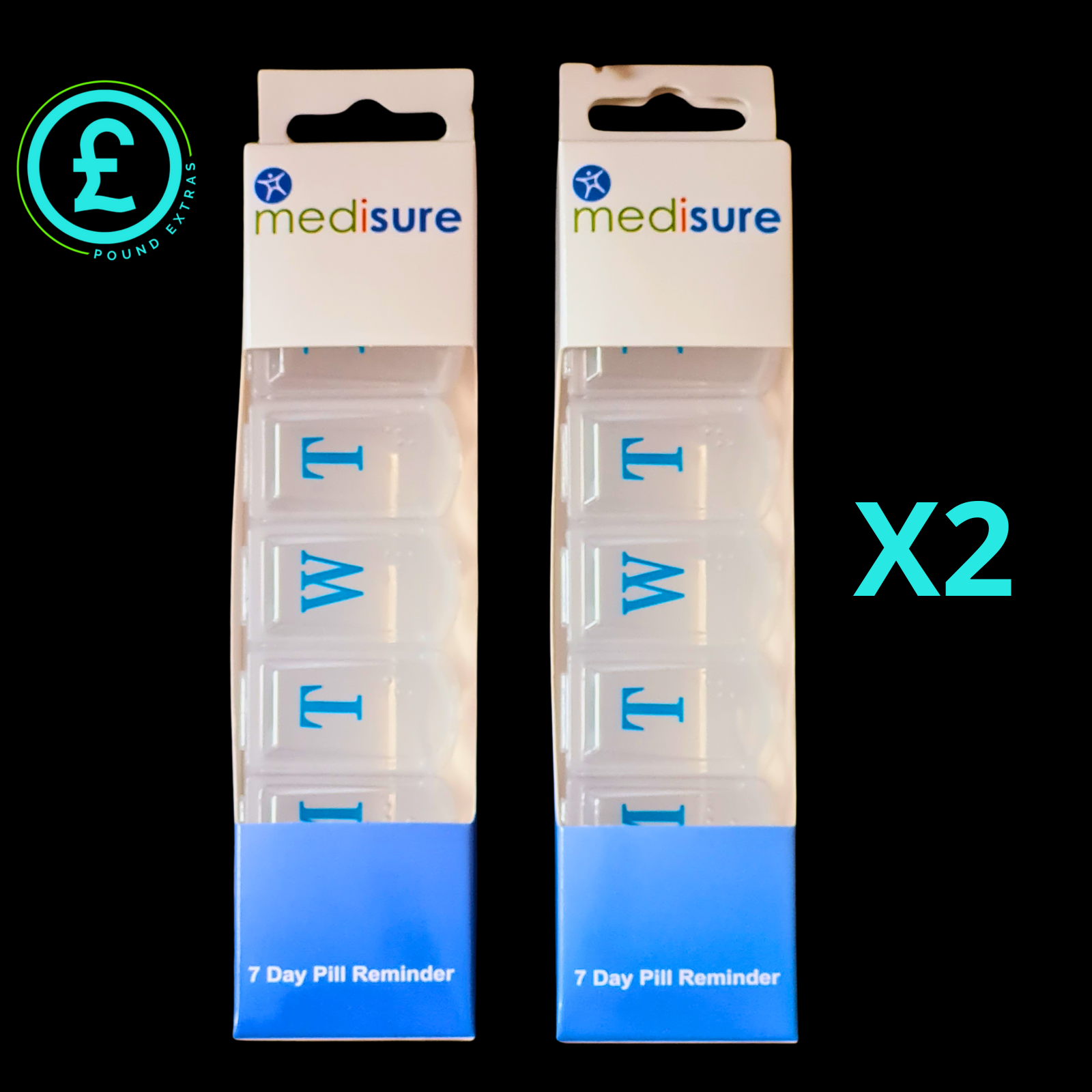 Medisure 7 Day Weekly Pill Box Organiser 2 Pack Clear Secure Braille Reusable