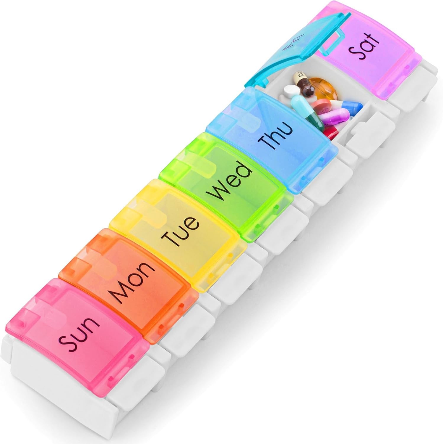 Boxsik Rainbow 7-Day Pill Box Organiser with Push Button Opener & Detachable Com