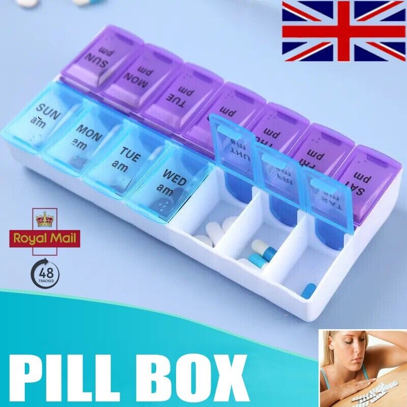 7 DAY WEEKLY PILL ORGANISER Box Day & Night Tablet AM PM Medication Dispenser UK