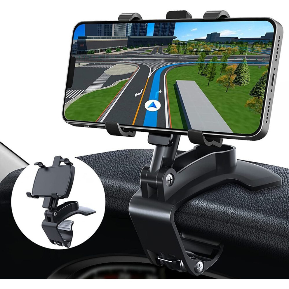 Car Phone Holder Mount, 360 Degree Rotation Dashboard Cell Phone Holder for Car Clip Mount Stand Suitable for 4 to 7 inch Smartphones (Black)