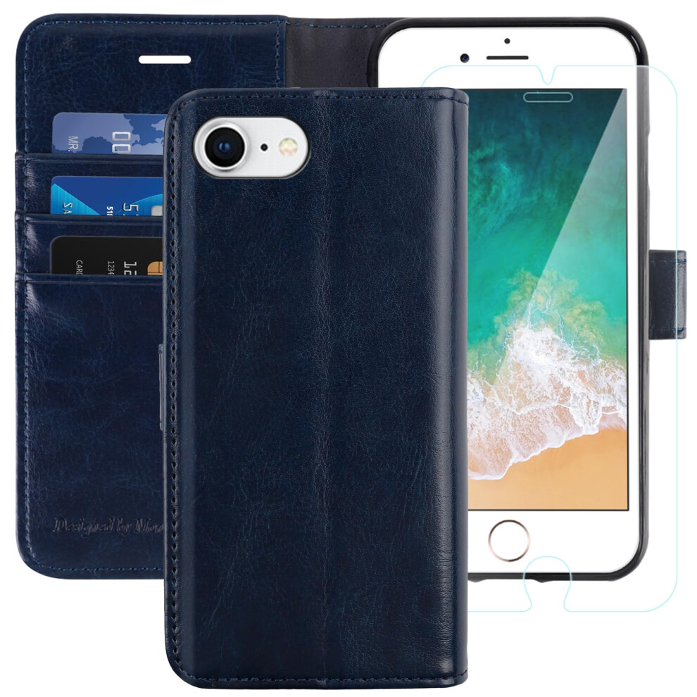 MONASAY Case Compatible for iPhone SE 2022/2020 5G iPhone 7/8 Wallet Case 4.7-inch [Glass Screen Protector] Flip Folio Leather Cell Phone Cover