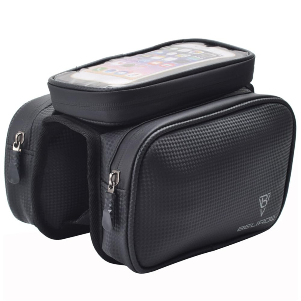 Fit Smartphone Under 7 Inch Bicycle Mobile Phone Front Frame Bag, Waterproof Touchscreen Holder, Top Tube Mount for Cycling