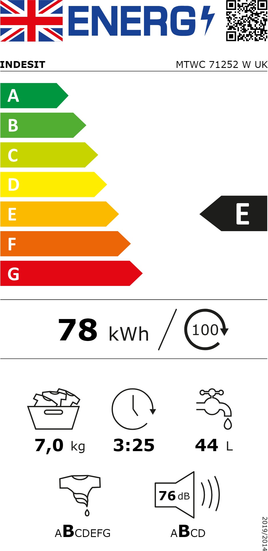 Indesit MTWC 71485 W UK 7kg Washing Machine with 1400 rpm - White - B Rated