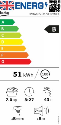 Beko BM3WU3741S 7 kg Washing Machine 1400rpm, StainExpert, Quick 28' Wash