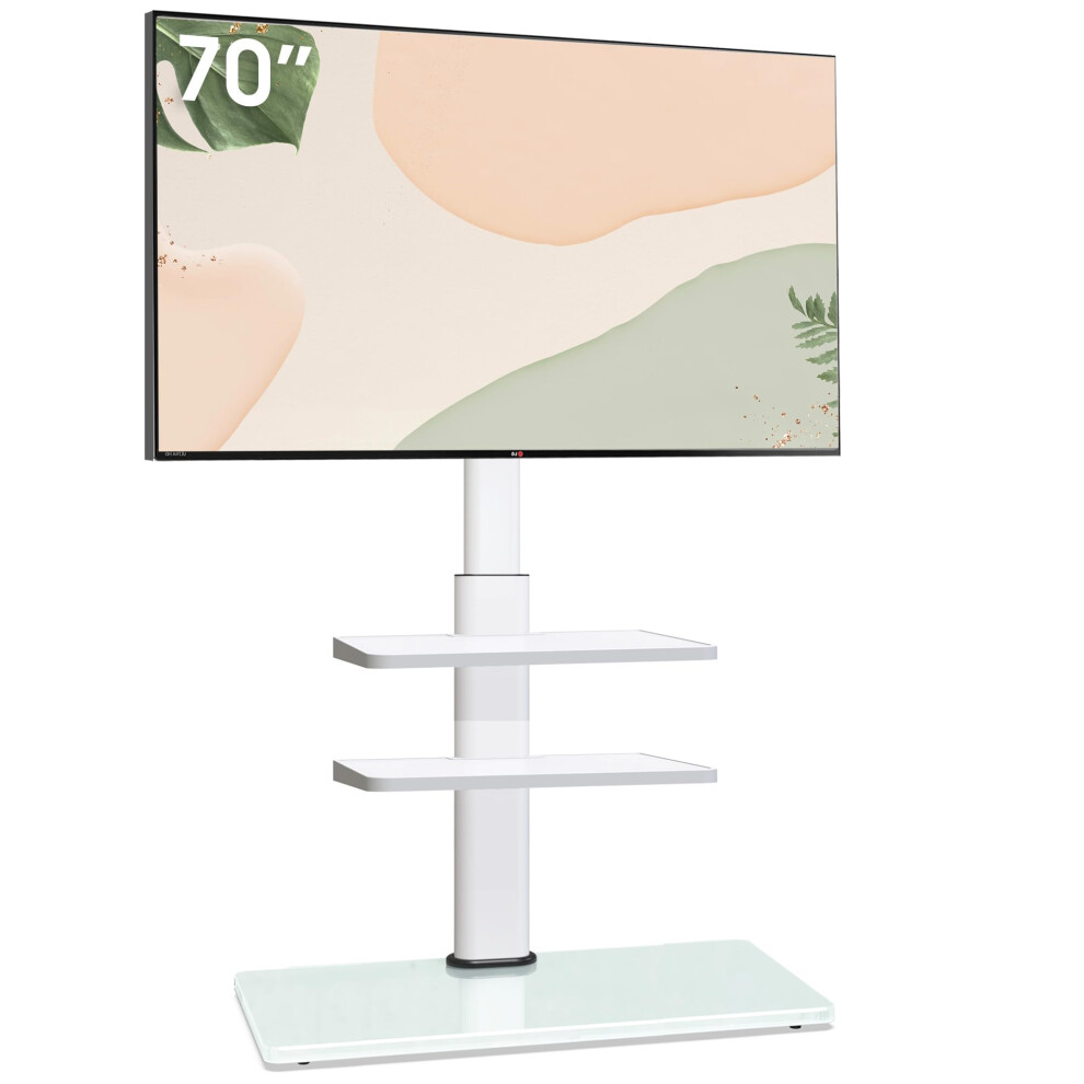 RFIVER Freestanding Swivel Floor TV Stand Tall TV Unit for 32 35 40 42 43 49 50 55 58 60 65 70 inch LCD/LED Flat Curved Screen Height Adjustable with