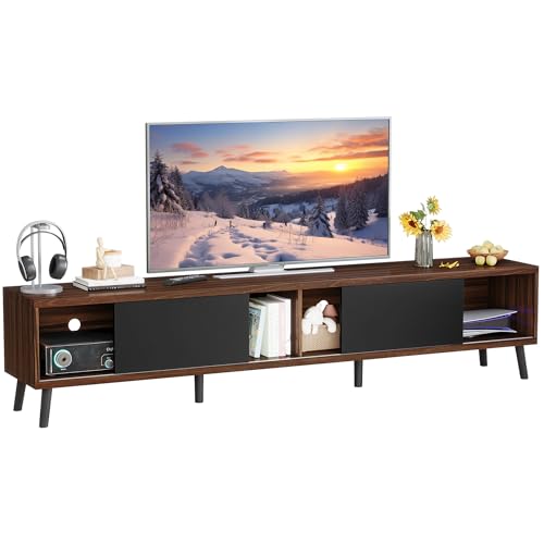 Clikuutory Mid Century Modern 70 Inch TV Stand with Two Large Storage Space for 50 55 60 65 70 75 80 Inch TVs, TV Console with Two Sliding Door, Entertainment Center for Bedroom, Walnut