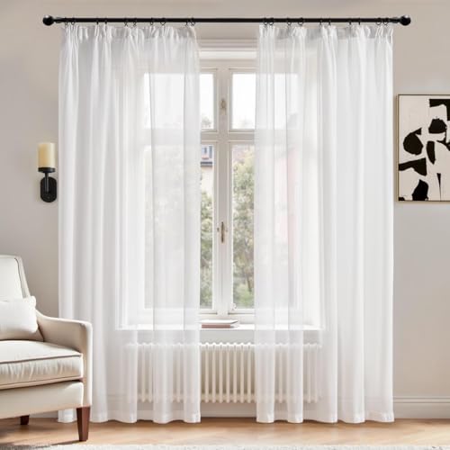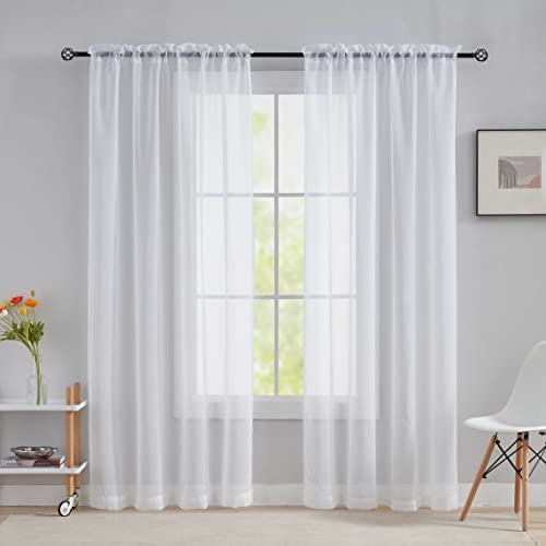 TOPICK White Net Curtains for Windows 72 Inch Drop, Sheer Curtains Long Voile Curtain 2 Panels for Bedroom, Lightweight Privacy Curtains for Living Room, Kitchen, 55W x 72L Inches