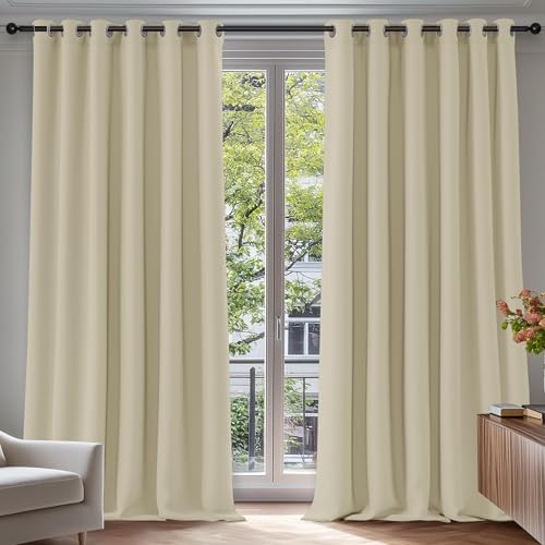 Deconovo Thermal Insulated Wide Beige Curtains Energy Saving Noise Reducing Eyelet Room Darkening Curtains for Living Room, 90 x 72 Drop Inch, 1 Pair, Beige