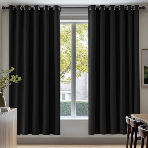 Deconovo Thermal Insulated Wide Black out Curtains Energy Saving Noise Reducing Eyelet Blackout Curtains for Living Room Bedroom, 90 x 72 Drop Inch, 1 Pair, Black