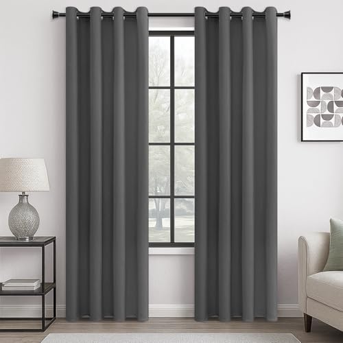 Deconovo Thermal Insulated Wide Curtains Grey Energy Saving Noise Reducing Eyelet Blackout Curtains for Living Room Bedroom, 90 x 72 Drop Inch, 1 Pair, Dark Grey