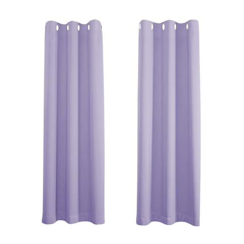 Happy Homewares Lilac Eyelet Curtains - 66 x 72 Inch Drop - Elegant Room Darkening Blackout Curtains with Thermal Insulation - 2 Panels for Bedroom or Living Room