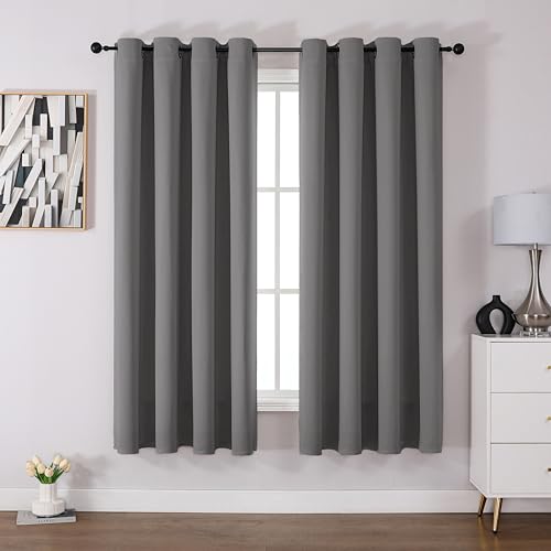 MRTREES Grey Blackout Curtains 72 Inch Drop, Thermal Insulated Curtains with Eyelet, Soft Fabric, 2 Panels 167x183 CM 66x72 Inch Dark Grey