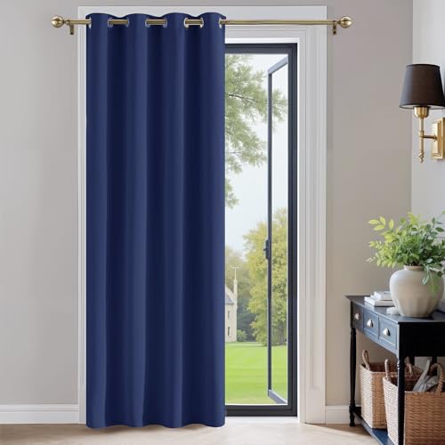 PONY DANCE Blue Blackout Curtains - Eyelet Window Curtain Thermal Insulated Room Darkening Window Treatment Door Curtain Living Room Bedroom, Single Panel, 52-inch Width x 72-inch Drop