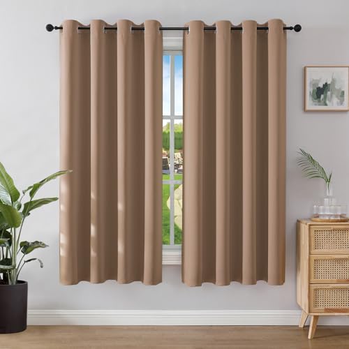 Deconovo Curtains Blackout Super Soft Thermal Insulated Eyelet Blackout Curtains for Bedroom 46 x 72 Inch Drop Taupe 1 Pair
