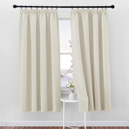 PONY DANCE Winter Blackout Curtains for Bedroom - 72 inch Drop Light Beige Pencil Pleat Thermal Curtain for Living Room Soft Texture Window Treatments for Nursery, W46 X L72, 2 Panels
