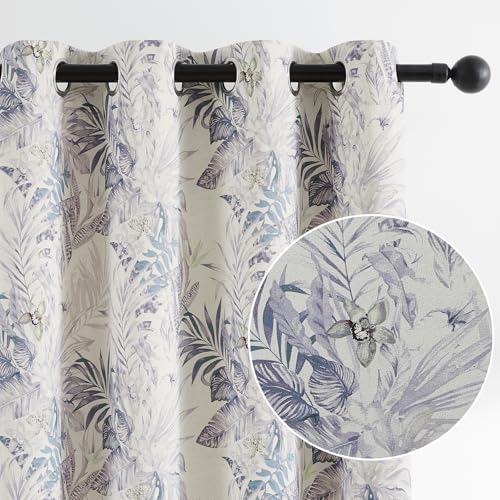 Melodieux Botanical Floral Blackout Curtains 72 Inch Drop for Bedroom Living Room Thermal Insulated Vintage Country Style Rustic Cotton Eyelet Curtains 52"