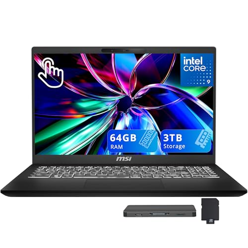 msi Modern 15 H 15.6" FHD Touchcreen Laptop, Intel Core 9 270H, 64GB DDR4, 3TB Storage (2TB SSD+1TB Docking Station Set), Intel Graphics, Backlit Keyboard, 720p HD Webcam, Wi-Fi 6E, Win 11 Pro, Black