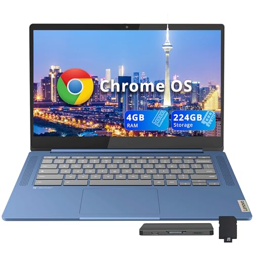 Lenovo IdeaPad Slim 14" FHD Touchscreen Chromebook, MediaTek Kompanio 520, 4GB LPDDR4X, 224GB Storage(64GB eMMC+160GB Docking Station Set), 720P HD Webcam, Wi-Fi 6, Chrome OS, Abyss Blue