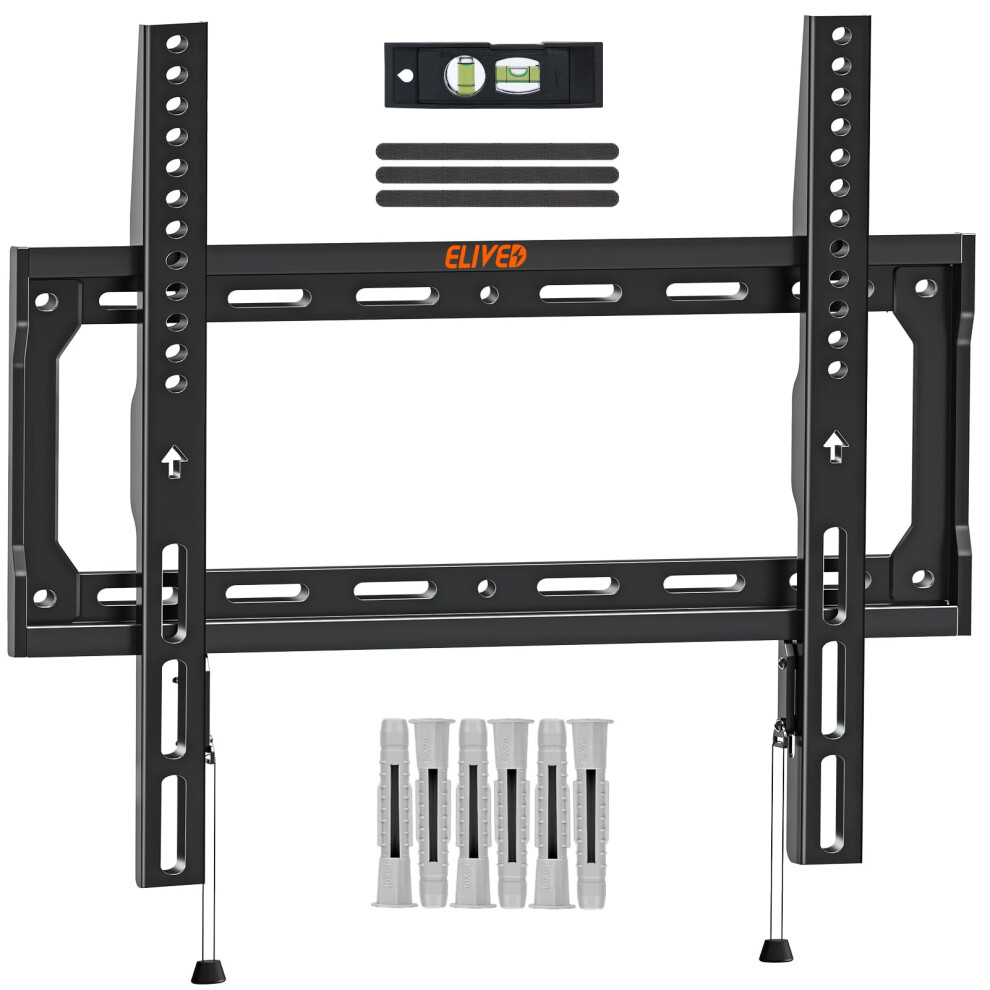 ELIVED Fixed TV Wall Bracket for Most 26-60 Inch LED, LCD, OLED Flat or Curved TVs, Ultra Slim Wall Mount with VESA 75x75mm-400x400mm up to 45KG, Low