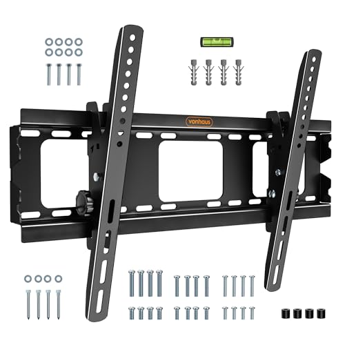 VonHaus TV Wall Bracket for 32-75" Screens, TV Bracket with Spirit Level, Flat to Wall Mount with Tilt, 75kg Capacity, Max VESA: 600x400mm