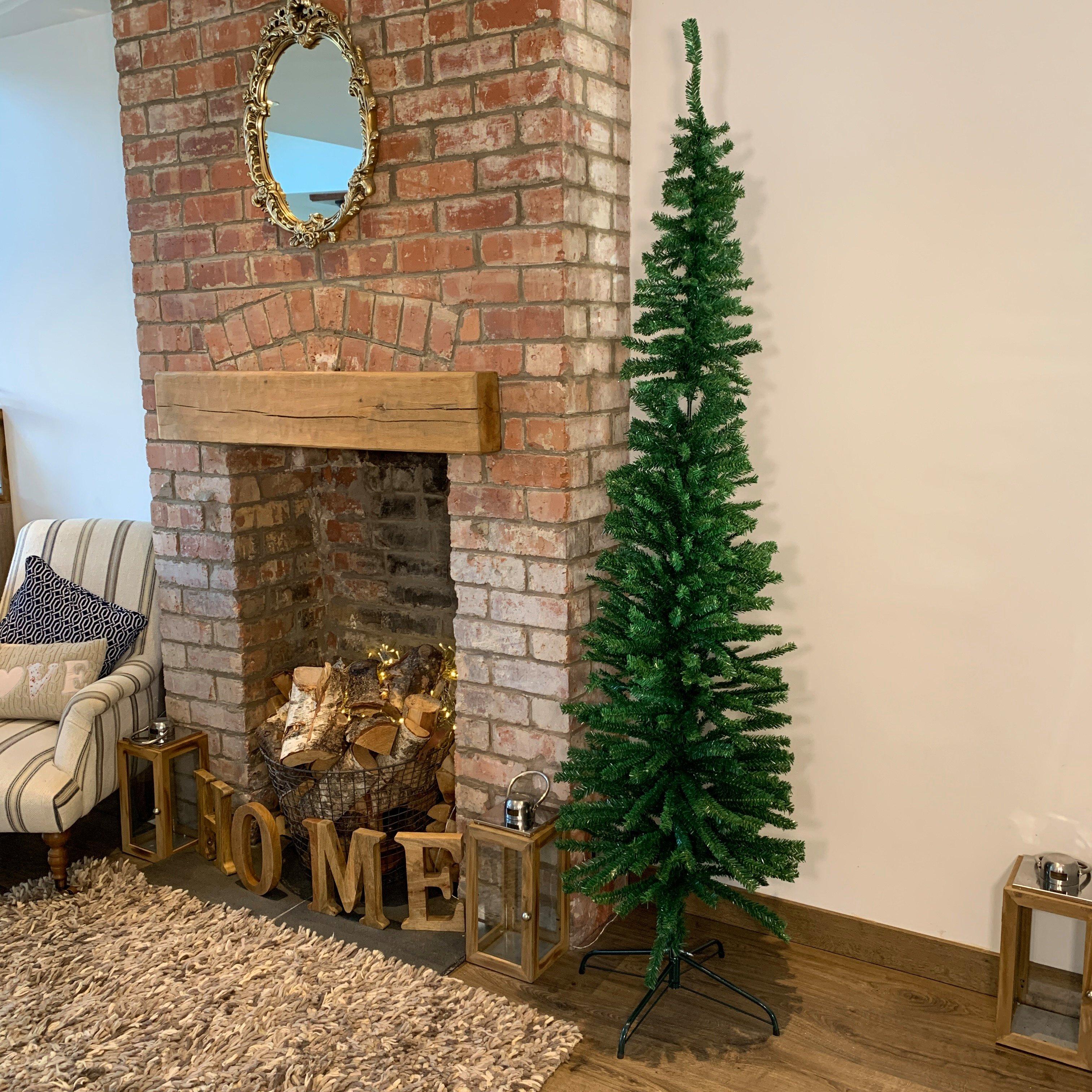 (7ft, Pre-lit) The Green Pencil Christmas Tree | 4ft-8ft | Unlit or Pre-lit | Christmas Tree World