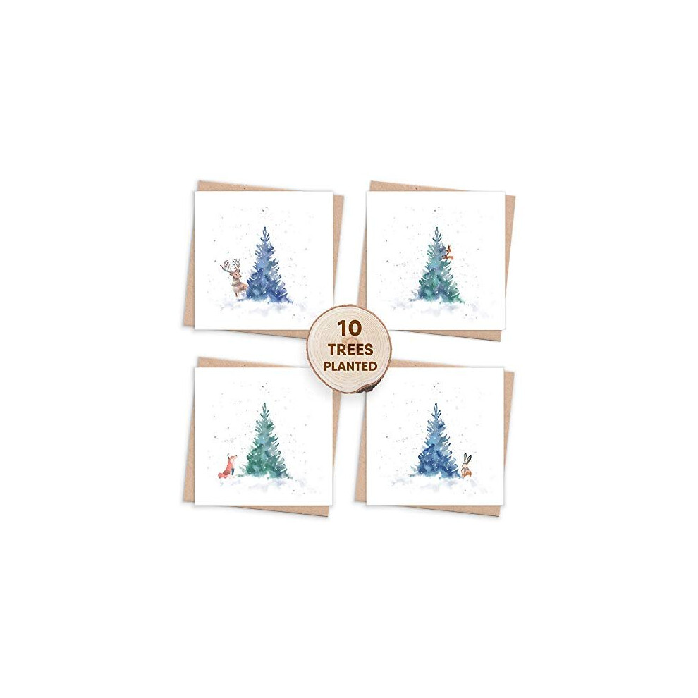 Eco Christmas Cards Pack of 10 - Recycled Boxed Xmas Cards 2022 - Sustainable Luxury with Tree Planting Gift & Flower Seed Paper | by 1 Tree Cards