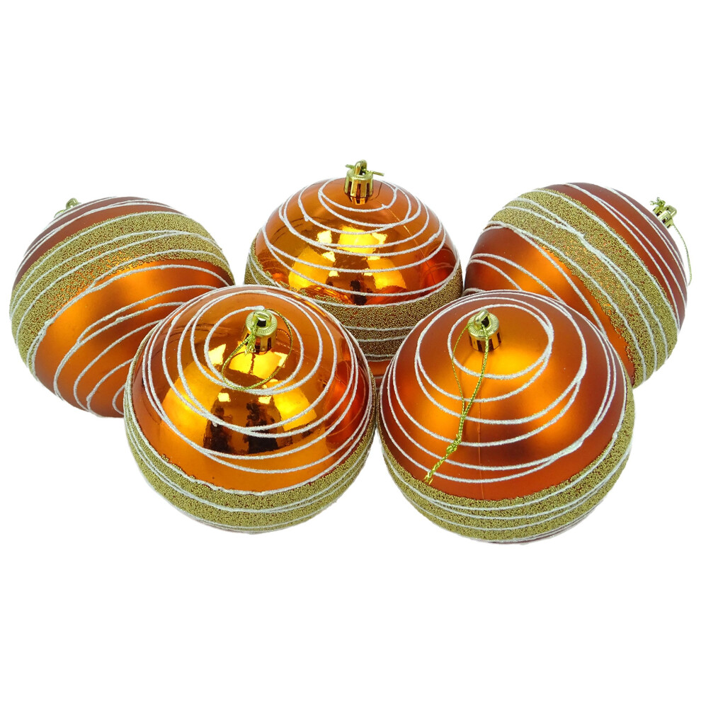 Christmas Conceptsî Pack of 5 - Extra Large 100mm Luxury Christmas Tree Baubles ââ¬â Shiny, Matte & Bead Decorated Baubles (Copper)
