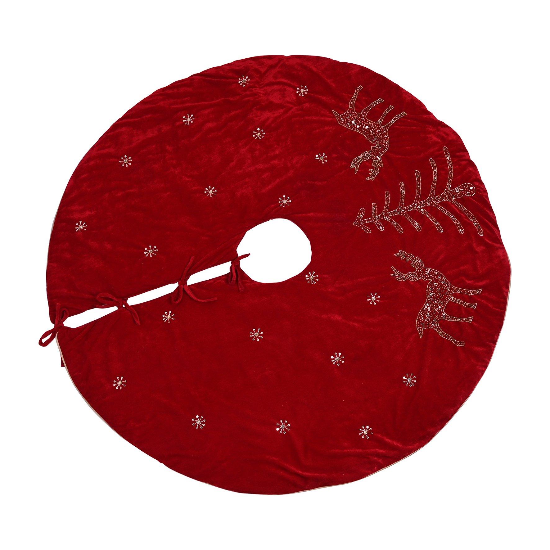 Hand Embellished Luxury Red Christmas Tree Skirt