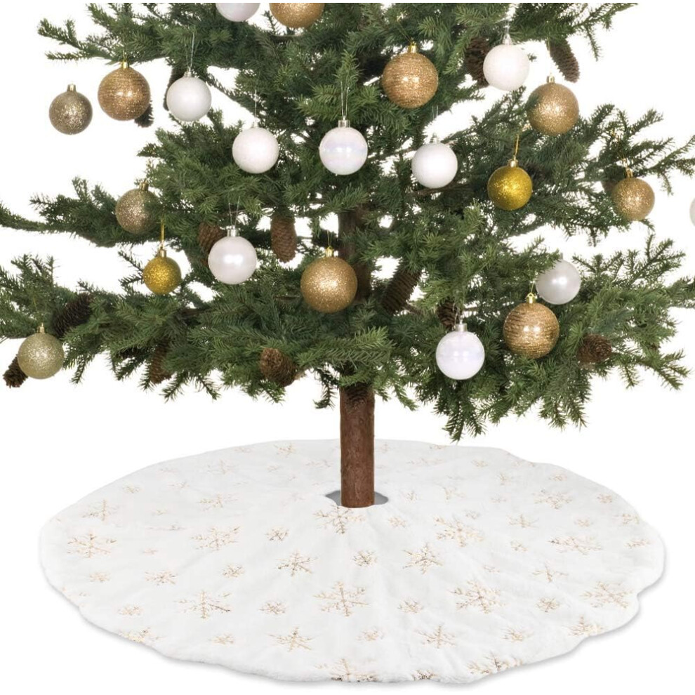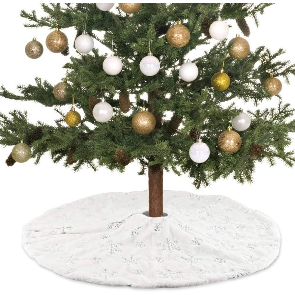 Sequin Tree Skirt, Snowflake White Luxury Faux Fur For 7FT Xmas Tree, Reusable Christmas Decorations With Hidden hook and loops For Home Festive Atmos