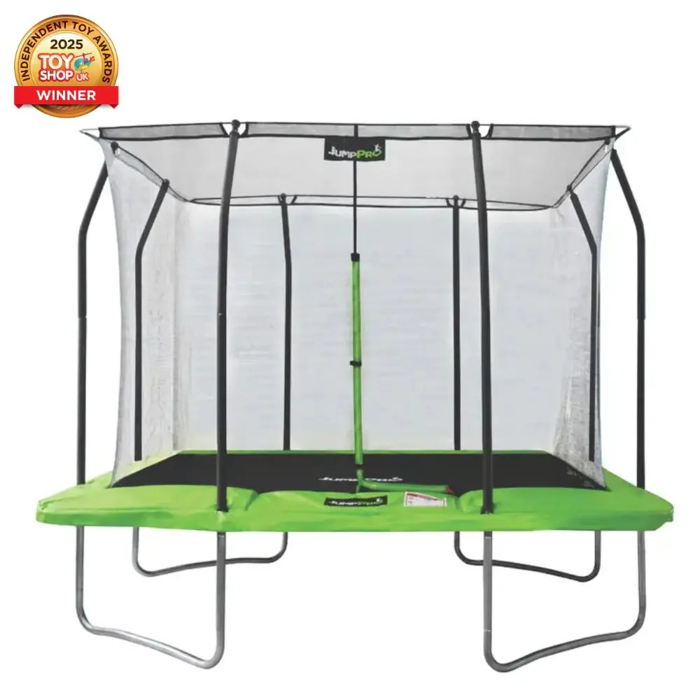 JumpPRO 10ft x 7ft Xcite Rectangular Jump PRO Trampoline. Galvanised Steel for Rust Resistance. Green Padding. Strong Sturdy High Specification with Inner Enclosure Netting for Added Safety.