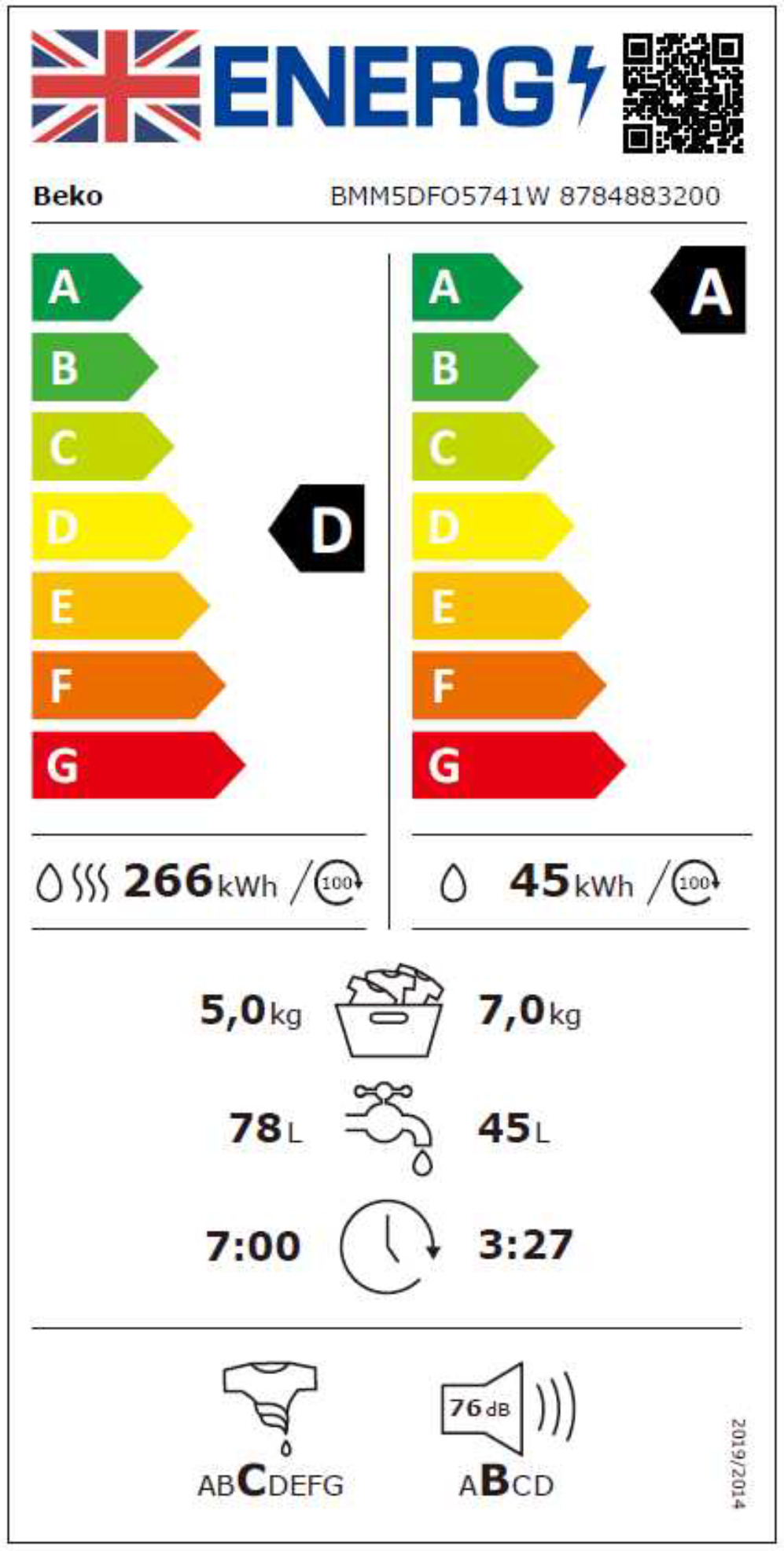 BDE 107436 WV UK Push&Go 10kg Wash 7kg Dry 1400rpm Washer Dryer - White