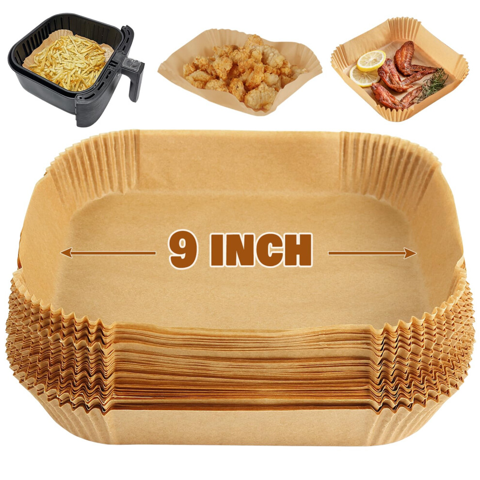 YQL 100pcs Large Air Fryer Liners Square, 9Inch Non Stick Disposable Parchment Paper for Airfryer 7L-10L, Air Fryer Accessories for Tefal Easy Fry