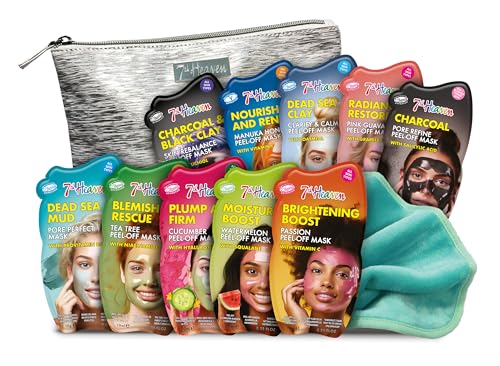 7th Heaven Face Mask Multipack – Pack of 7 Clay, Mud & Peel-Off Masks with Retinol, Caffeine, Glycolic Acid & Niacinamide – Deep Cleansing & Purifying Skincare for Women – Cruelty-Free