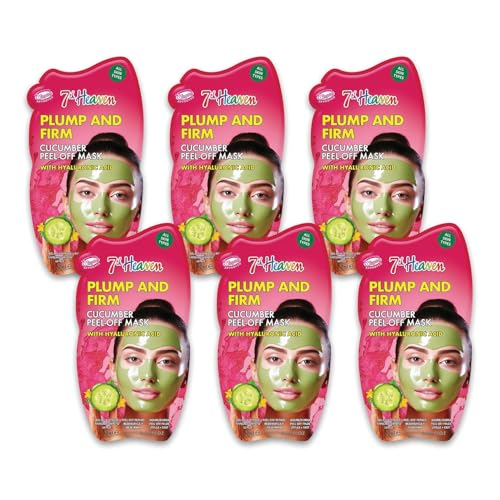 7th Heaven Cucumber Peel Off Face Mask with Hyaluronic Acid - Plump and Firm - Genuine 7th Heaven Face Masks Skincare (Pack of 6, Cucumber)