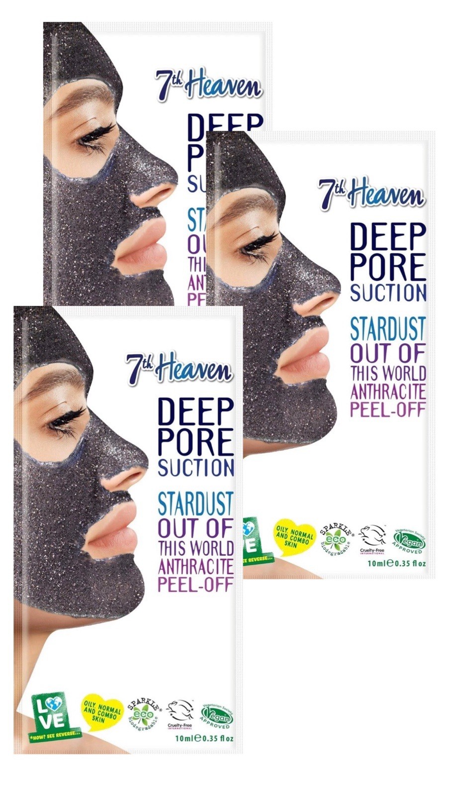 7TH HEAVEN Peel-Off Face Mask Deep Pore Suction Glitter Masks 10ml - 3 pcs