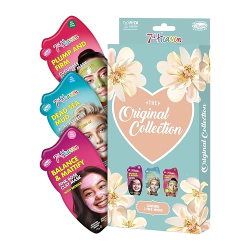 7th Heaven The Original Collection Face Mask Gift Set - 3 Skincare Masks - Pink Rose Clay, Dead Sea Mud, Cucumber Peel Off