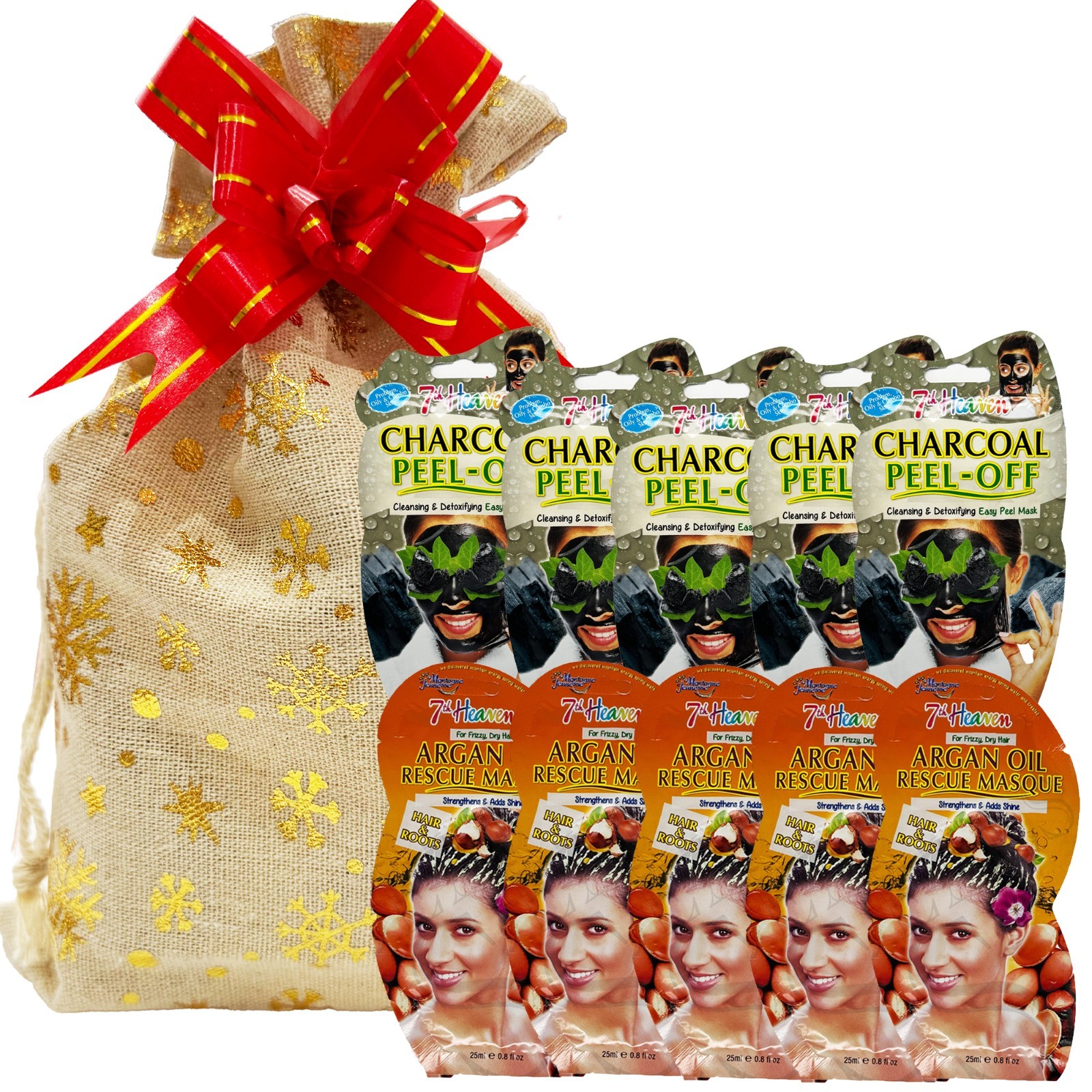 7th HEAVEN ARGAN OIL RESCUE MASQUE HAIR 5 X & CHARCOAL PEEL OFF FACE MASK 5 X