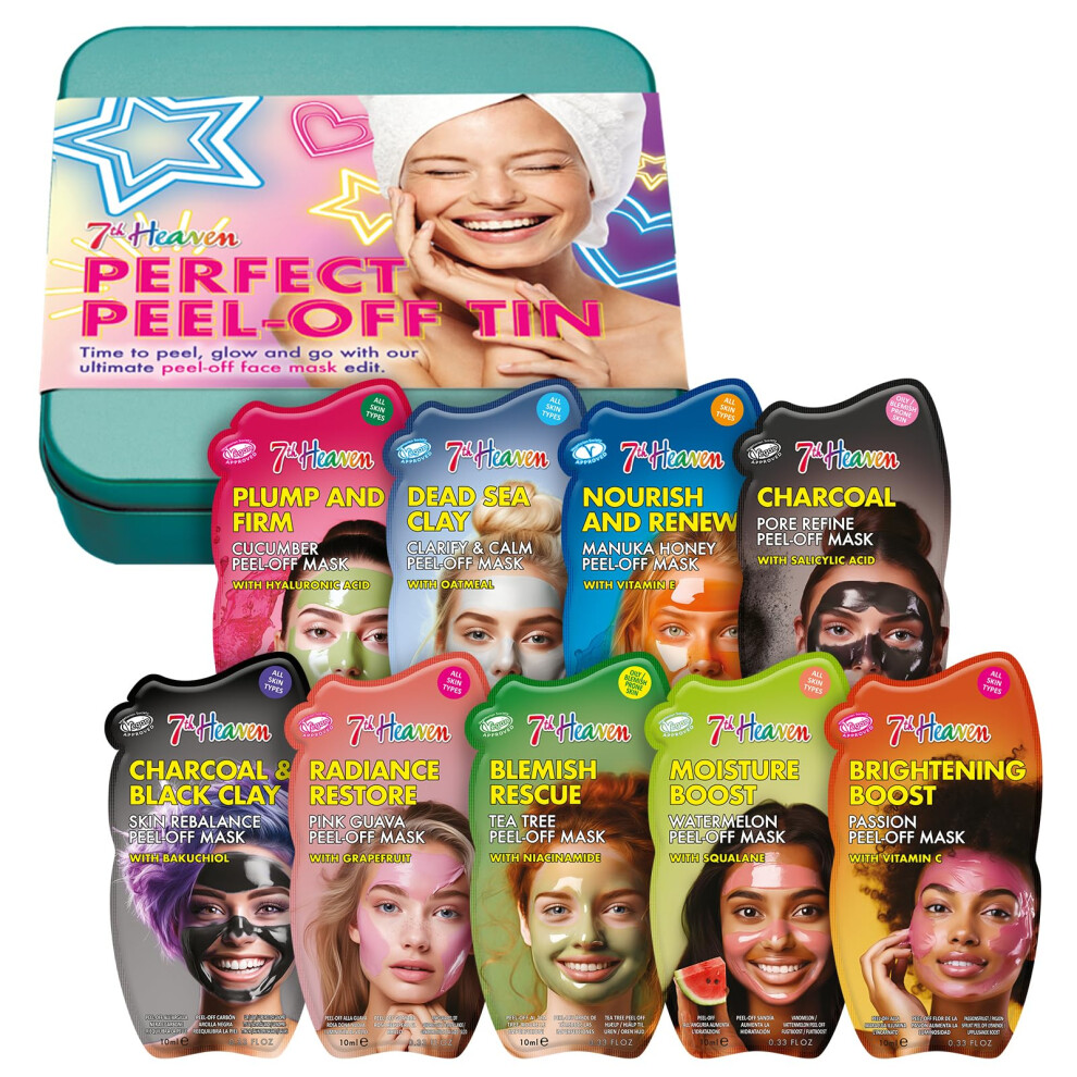 7th Heaven Perfect Peel Off Face Mask Gift Set in Tin (Contains 9 Peel Off Face Masks) Pamper Gifts for Women & Girls - Genuine 7th Heaven Skincare