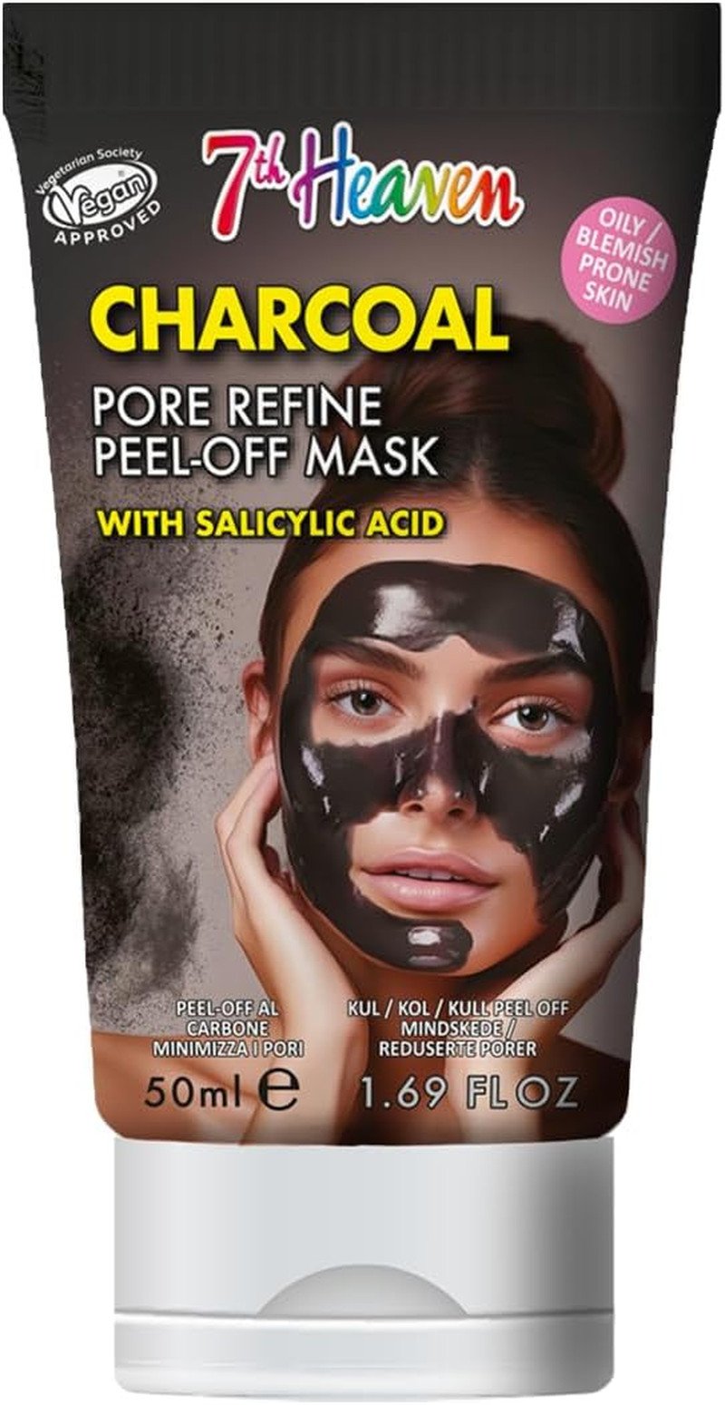 7th Heaven Charcoal Peel Off Face Mask with Salicylic Acid - 50ml Multi-Use Tube - Pore Refine - Oily and Blemish Prone Skin