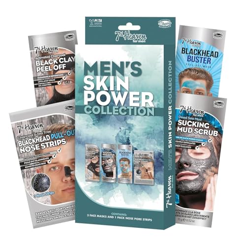 7th Heaven Men’s Face Mask Gift Set – 3 Deep Cleansing Clay, Mud & Peel-Off...