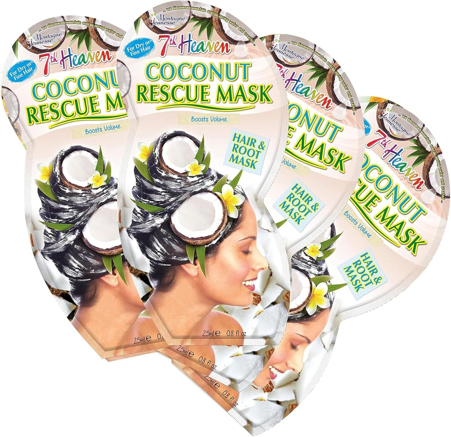 7th Heaven Coconut Hair Mask (Pack of 4) – Deep Conditioning Hair Treatment for Dry or Damaged Hair – Strengthens Roots, Boosts Volume & Shine – 5 Minute Hair Mask, Vegan Friendly.