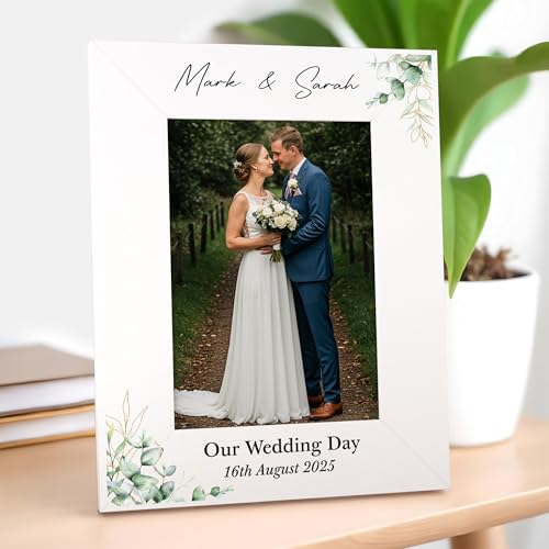 Beecreative Wedding Photo Frame Personalised - Printed White Wooden 6x4 7x5 Picture Frame - Custom Wedding Gifts For Couple