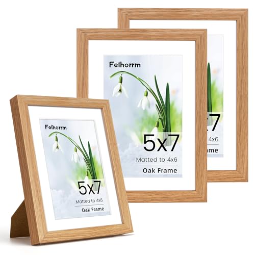 Photo Frame 5x7, 3 Pack Solid Oak Wood 5x7 inch Picture Frame, 5x7 Frame with Mount for 4x6 Photo Frame, 7x5 Picture Frame with Tempered Real Glass for Tabletop and Wall Mounting Display