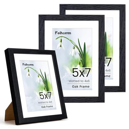 Photo Frame 5x7, 3 Pack Solid Oak Wood 5x7 inch Black Picture Frame, 5x7 Frame with Mount for 4x6 Photo Frame, 7x5 Picture Frame with Tempered Real Glass for Tabletop and Wall Mounting Display