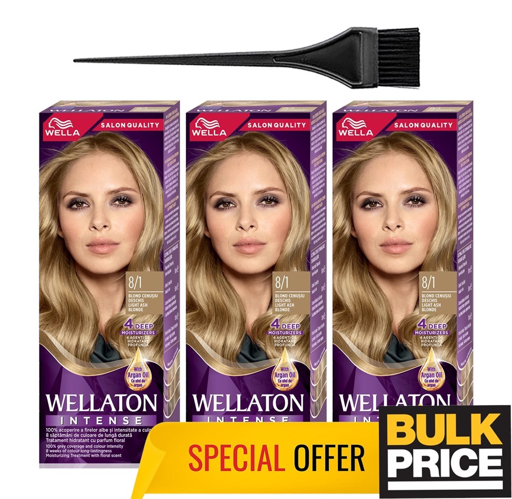 Wella Wellaton 8/1 Light Ash Blonde Professional Hair Color Salon Quality 3-Pack