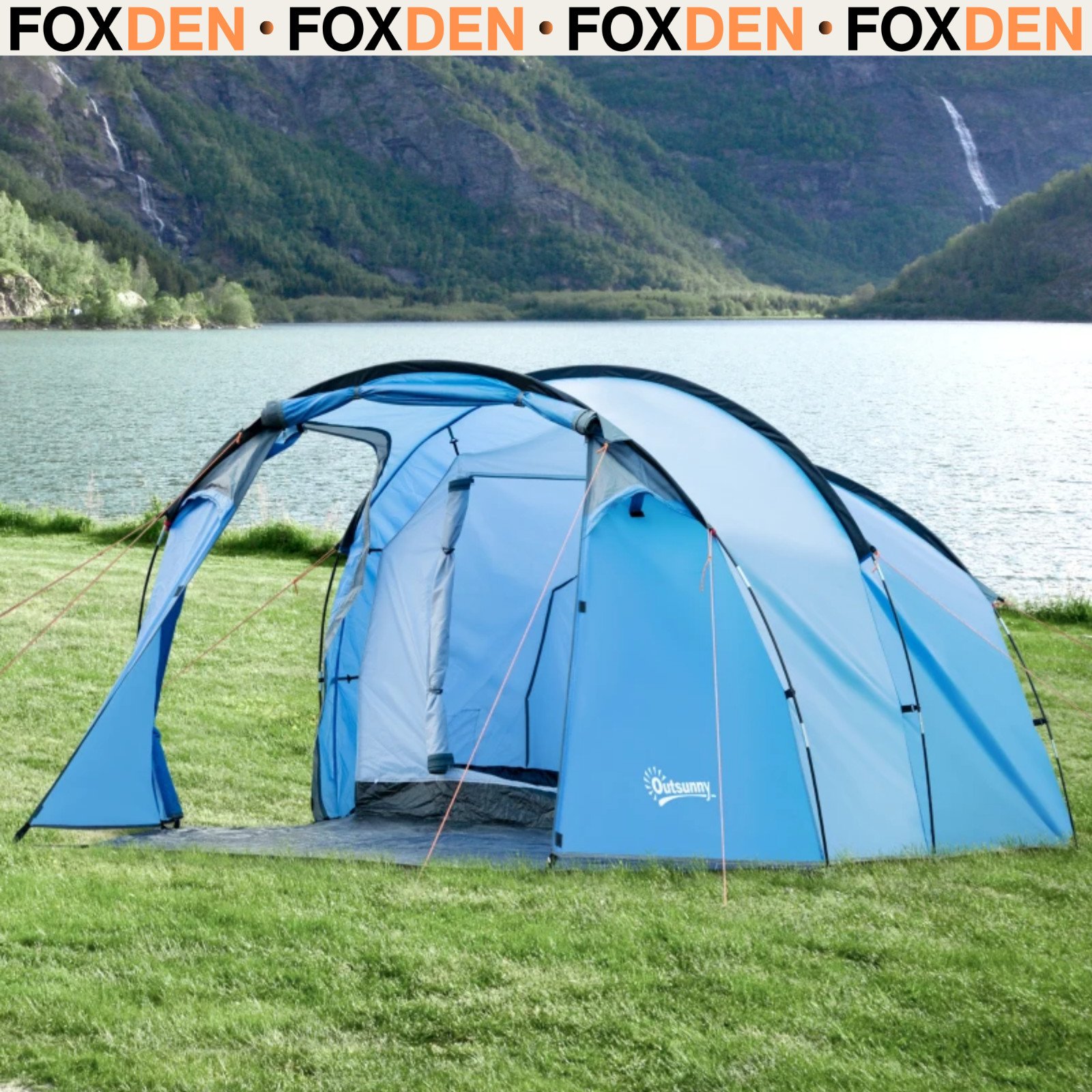 3 4 Man Tunnel Tent Air Vents Blue Carry Bag Festival Lightweight Poles FOXDEN