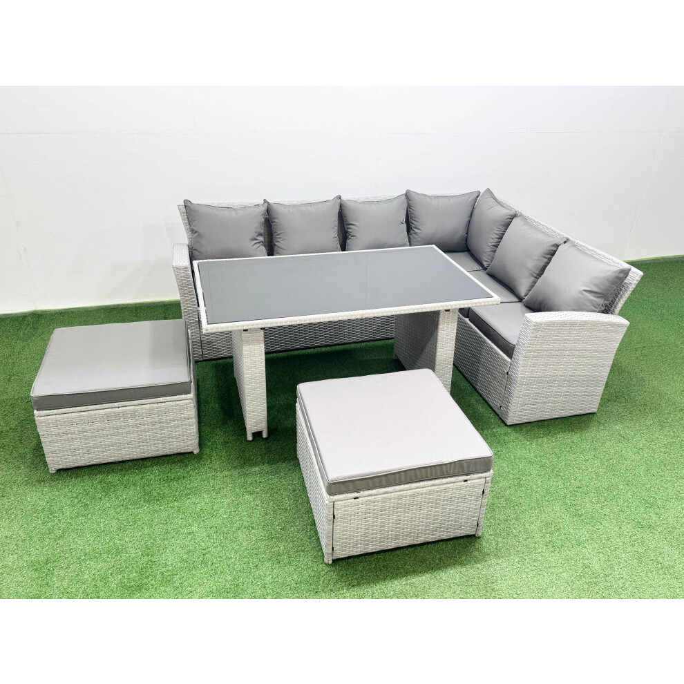 Fimous Rattan Garden Furniture Set Outdoor 8 Seater Patio Dining Corner Sofa Sets with Dining Table 2 Big Footstools Light Grey Mixed