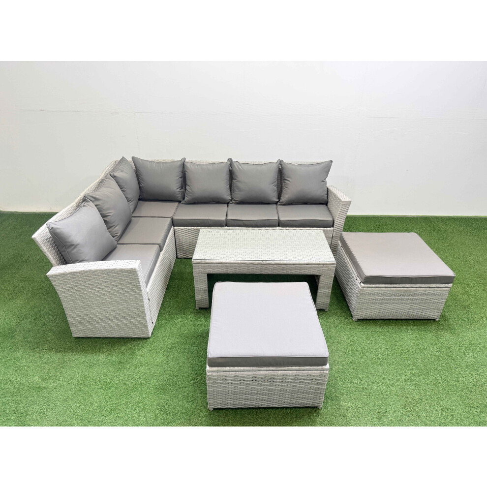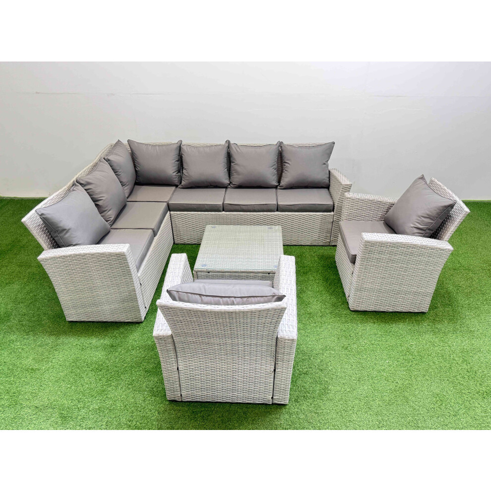 Fimous Outdoor Rattan Garden Furniture Set 8 Seater Corner Sofa Sets with Square Coffee Table Chair Big Footstool Light Grey Mixed