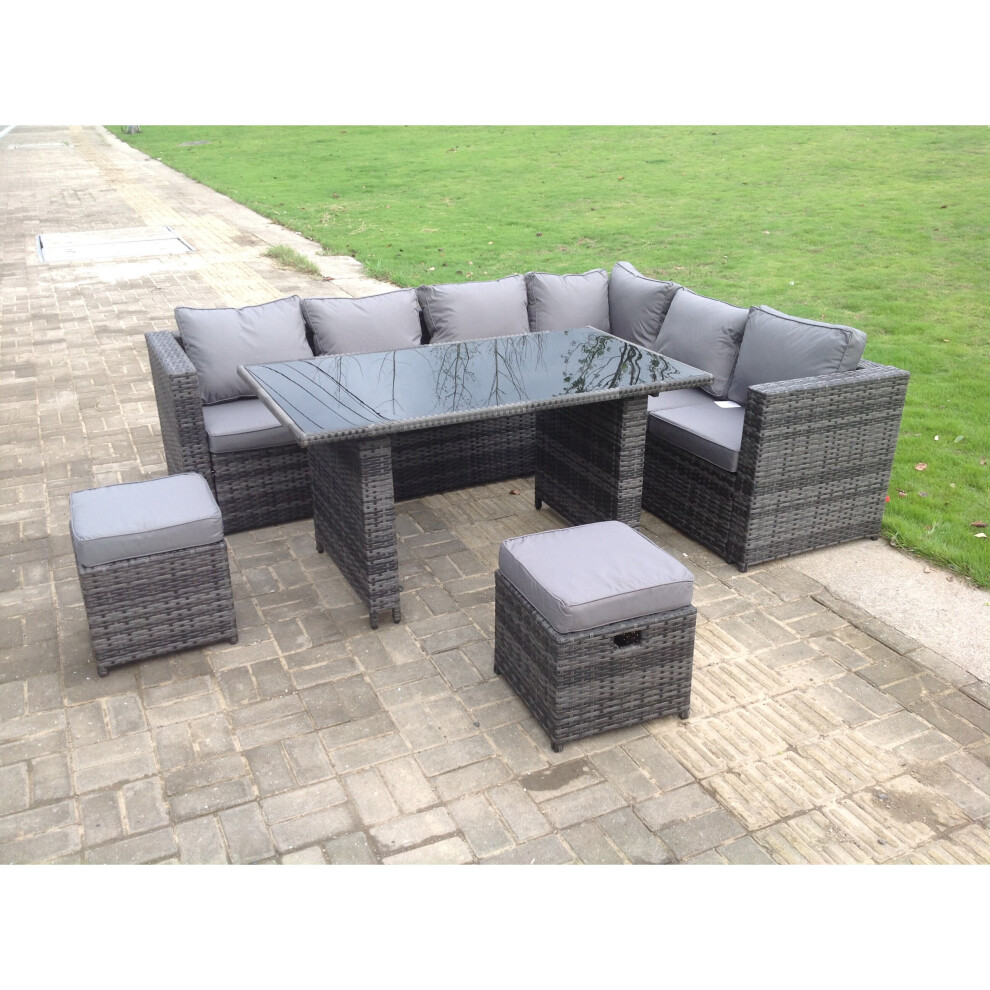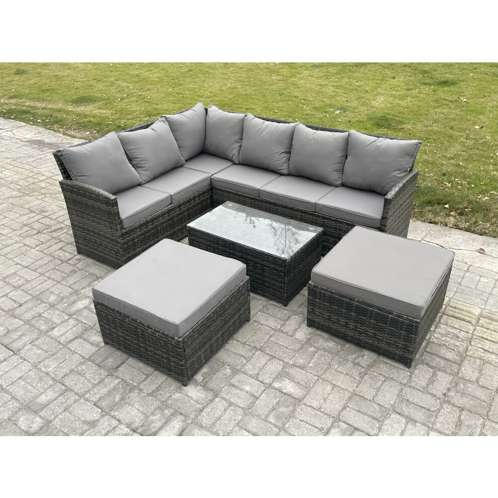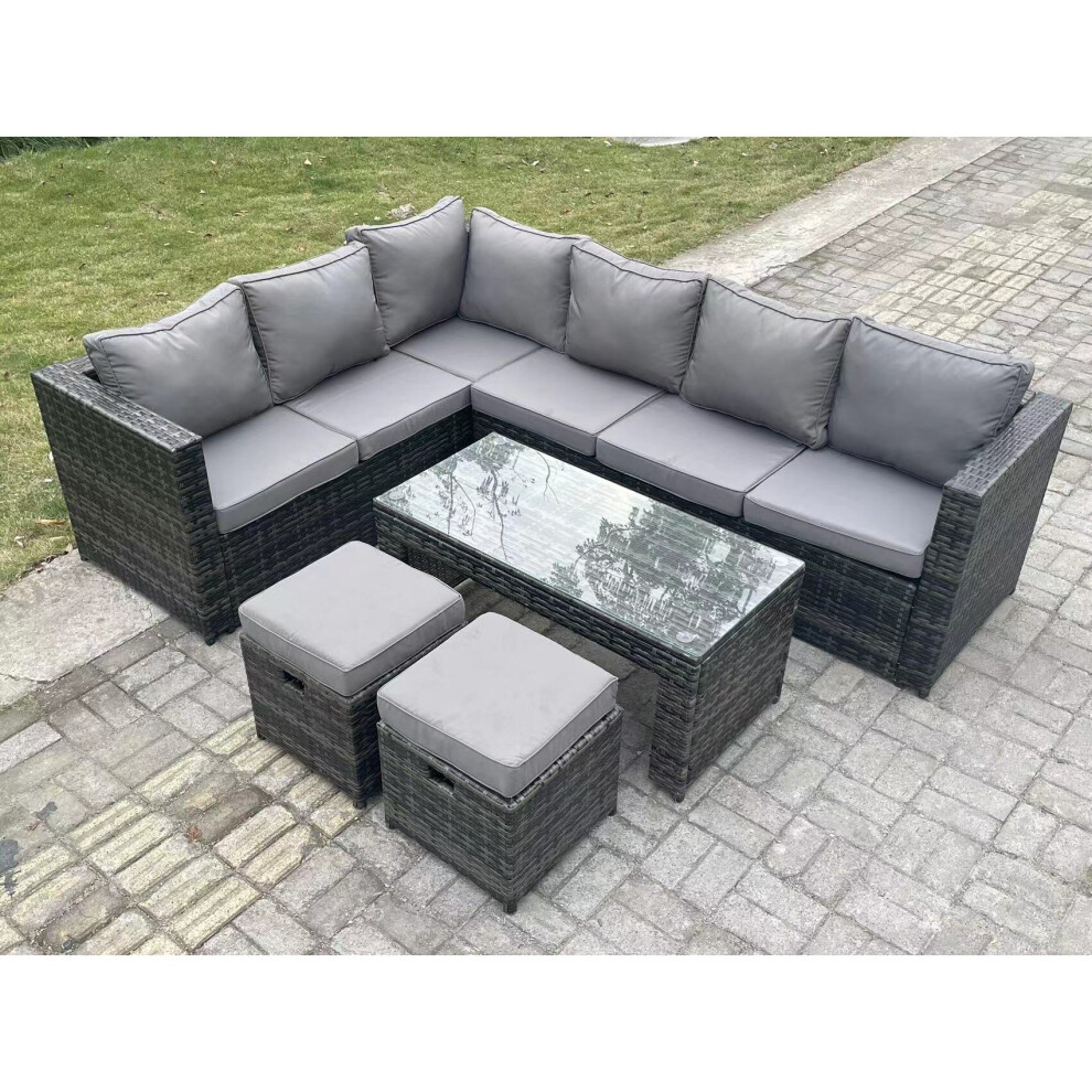 FMSGarden 8 Seater Rattan Corner Sofa Lounge Sofa Set With Rectangular Coffee Table 2 Stool Dark Grey Mixed Right Hand